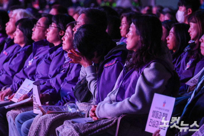 보랏빛 광화문, 이태원참사 3주기 추모식…정부 첫 공식 행사  29일 오전 서울 종로구 광화문광장에서 열린 10.29 이태원 참사 3주기 기억식에서 희생자 유가족이 눈물을 보이고 있다. 기억식은 오전 10시 29분부터 1분간 울린 추모사이렌과 함께 희생자를 기리는 묵념으로 시작됐다. 정부가 유가족과 공동으로 공식 추모행사를 연 것은 이번이 처음이다. 류영주 기자