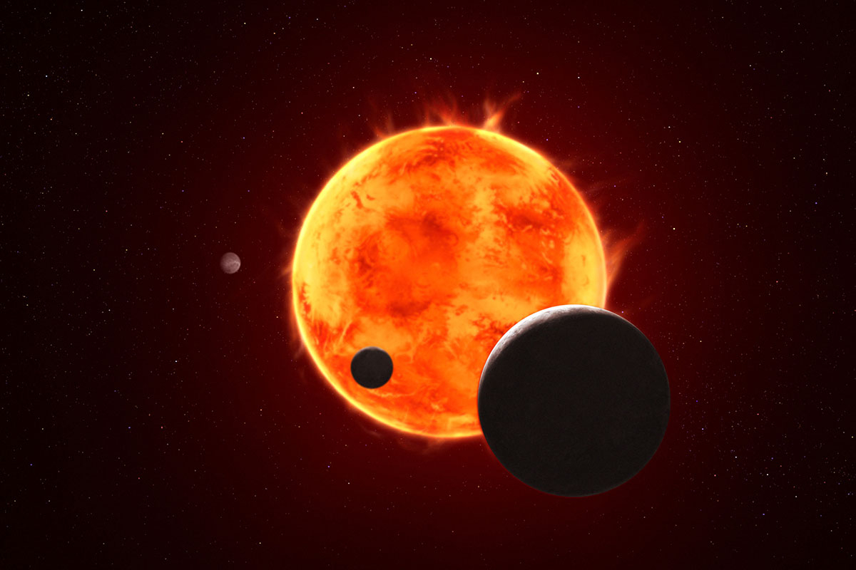 태양보다 작고 차가운 별 적색왜성, 지구에서 약 40광년 거리 떨어진 '트라피스트-1'에는 암석으로 구성돼 딱딱한 표면으로 이뤄진 지구형 행성 7개가 다양한 위치에서 공전하고 있습니다.