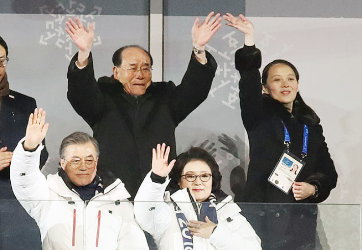 ◇ 김현정> 저 눈물 흘리는 저 사진 그러니까 앞에는 문재인 대통령, 당시 대통령 내외가 있고 뒤에 김여정, 김영남이 있는데 손을 흔들면서 막 눈물을 흘리는데