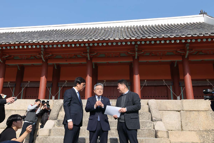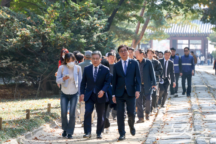 최 장관은 7일 오후 허민 국가유산청장과 함께 서울 종묘를 찾아 "종묘는 조선 왕실의 위패가 모셔진 신성한 유산이며, 우리나라 유네스코 세계유산 1호의 상징적 가치를 가진 곳"이라며 "이러한 가치가 훼손될 수 있는 현 상황이 매우 우려스럽다"고 말했다.