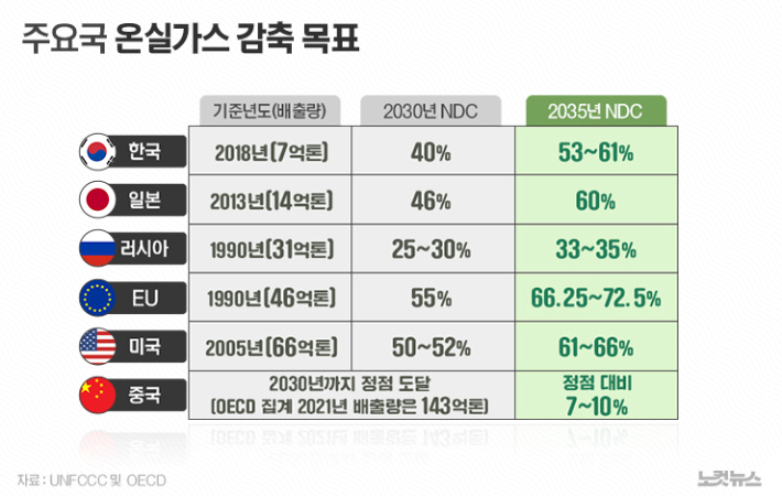 2035년까지 온실가스 '2018년 대비 53~61% 감축' 목표