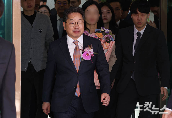 '대장동 항소 포기' 논란으로 사의를 표명한 노만석 검찰총장 직무대행이 14일 오전 서울 서초구 대검찰청에서 열린 퇴임식을 마친 후 청사를 나서고 있다.