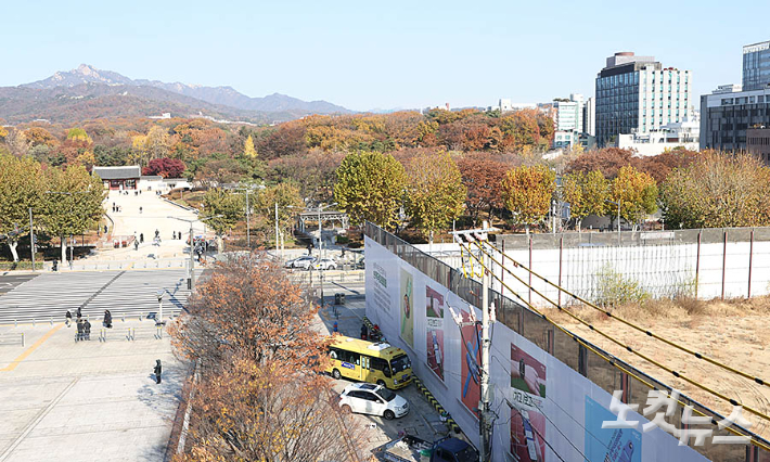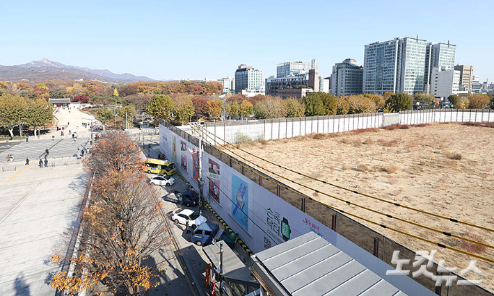 유네스코 세계유산인 종묘 앞 세운4구역 재개발사업의 고층 빌딩 조성 계획에 정부와 유네스코가 우려를 나타내는 등 정부와 서울시의 갈등이 이어지고 있는 가운데 19일 서울 종로구 종묘와 세운 4구역 재개발 공사 현장 모습.
