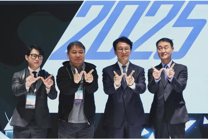 ◇ 박재홍> 그렇군요. 유익한 사업을 많이 진행하시면 좋겠고. 최근에 김민석 총리와 함께 부산 지스타도 다녀오셨네요. 저희가 사진을 준비했는데 한번 볼까요? 우리 오창석 이사장님 맨 왼쪽에 김민석 총리님. 죄송하지만 키순으로 서신 건 아니시죠? 이게 약간 사진이 공교롭게.