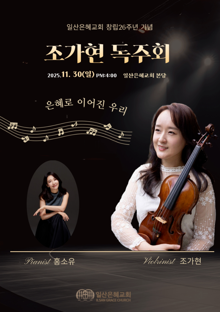세계 정상급 바이올리니스트 조가현, 일산은혜교회 창립 26주년 기념 독주회 개최