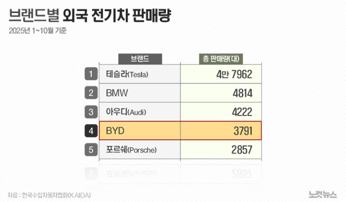 2025년 외국산 전기차 4위…내년 성장세 더 가팔라지나