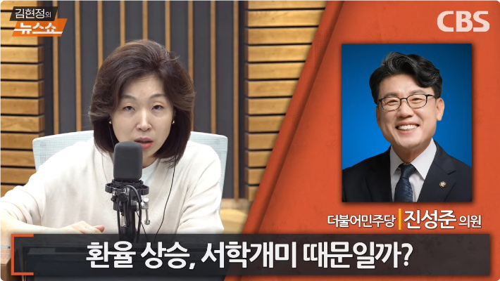 ◆ 진성준> 그러니까 이렇게 구조적인 요인들이 있어요. 그런데 단순하게 우리 시중에 원화가 많이 풀려 있기 때문에 환율이 높은 거라고 하는 거는 아주 초보적인 논리, 단순한 산술 논리에 불과하다고 생각합니다. 우리 경제가 그동안에 아주 장기간의 내수 부진으로 경제 성장률마저 갉아먹는 상황이었잖아요. 그리고 AI와 같은 신산업에 대해서 투자를 강화해야 될 시기이기 때문에 확장 재정은 불가피합니다. 그런데 이 확장 재정이라고 하는 것도 이재명 정부 들어서서 재정정책의 기조를 변화시켰던 거지 지난 윤석열 정권 3년 동안에는 재정 건전성을 이야기하면서 긴축 재정하려고 하지 않았습니까? 그러니까 통화가 많이 풀려서 환율이 높은 거다 이렇게만 얘기하는 것은 또 과도한 주장입니다.