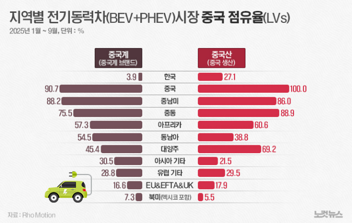 아세안(ASEAN) 지역부터 공략했다. 일본 업체들이 장악했던 시장이지만, 중국차 브랜드들이 저렴한 전기차 모델들을 집중적으로 투입해 순식간에 점유율을 끌어올렸다. 올해 3분기 기준 태국(93.1%)과 인도네시아(75.8%) 시장에서 중국차 점유율은 다른 완성차 업체들을 압도했다.