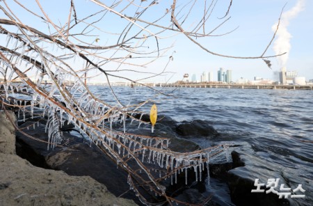 서울 아침 기온이 영하 7도까지 내려가며 강추위가 찾아온 3일 오전 서울 여의도 한강변에 고드름이 얼어 있다. 기상청에 따르면 이날 아침 강원 대관령은 영하 13.2도, 경기 파주는 영하 11.5도, 강원 철원은 영하 11.1도, 서울과 인천은 영하 7.9도를 기록했다.