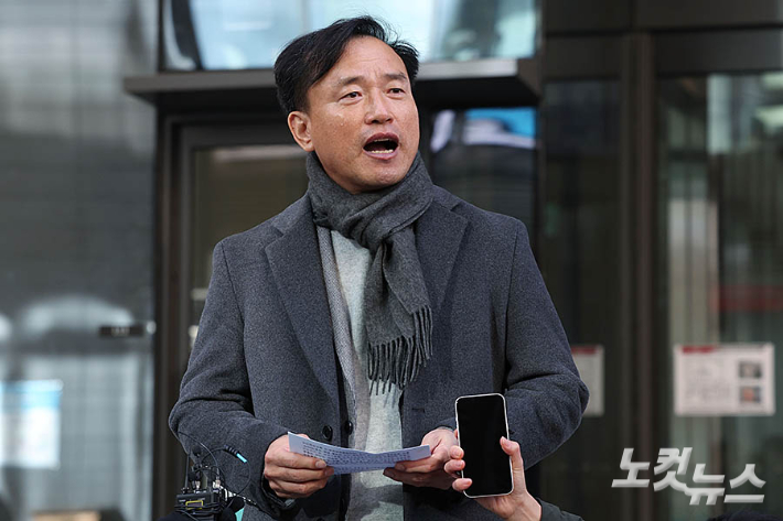 김종철 초대 방송미디어통신위원회(방미통위) 위원장 후보자가 4일 오전 경기도 과천시 인사청문회 준비사무실에 출근하며 소감을 밝히고 있다.