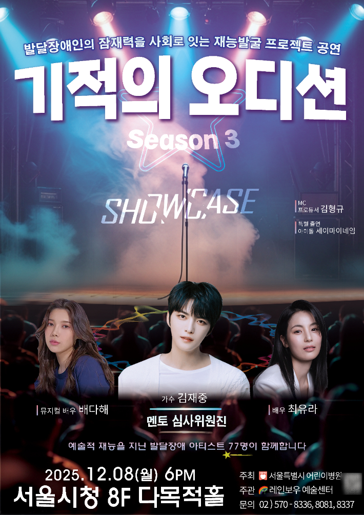 음악 교육을 통한 발달장애 치료를 표방한 이 병원 '레인보우 예술센터'(센터)가 8일 서울시청 무대에 올리는 '기적의 오디션 시즌3'. 77명의 발달장애 아동·청소년·성인들이 1년간 준비한 무대다.