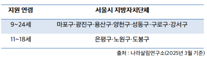 자치구별로 사업 명칭이 제각각인 점도 문제다. 보고서는 사업명에 '생리대' 또는 '생리용품' 지원을 명시하고 있는 곳도 있으나 '보건위생물품 지원사업', '청소년 건강지원 사업' 등의 명칭을 사용하는 곳도 있어 생리대 지원사업인지 명확히 알 수 없는 경우도 적지 않고 지적했다. 또 생리용품 지원 관련 조례 제정된 자치구를 보면, 지원 연령이 달라 일부 자치구에서는 11~18세로 지원 대상 연령 범위가 더 좁다.