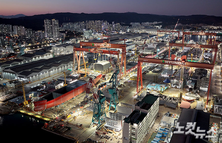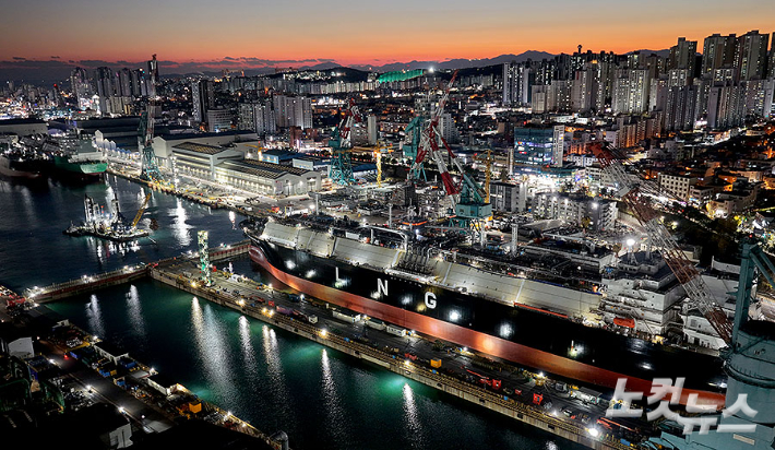 한국 조선업이 '제2의 전성기'를 맞았다. 한국과 미국이 공동 추진 중인 미국 조선업 재건 프로젝트 '마스가(MASGA·Make American Shipbuilding Great Again)'를 통해 외교카드로서의 역할을 해냈다. 국내 조선 3사(HD한국조선해양·한화오션·삼성중공업)는 올해 수주 목표 달성을 눈앞에 두며 세계 선박 수주량 1위 국가로 다시 올라섰다. K-조선의 화려한 부활이 우리나라 경제 부활도 이끌 수 있기를 바라본다. 사진은 지난 4일 불이 꺼지지 않는 울산 HD현대중공업의 야경.
