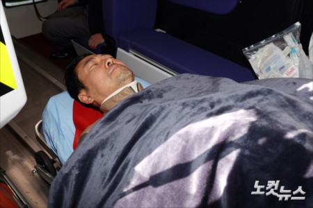 단식 중단하고 병원으로 이송되는 장동혁 대표