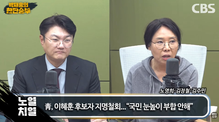 ◇ 박재홍> 잘 오셨어요. 노 변호사님, 이혜훈 후보자 지명 철회 얘기하고 있습니다. 노 변호사님도 지명 철회해야 한다고 말씀하셨잖아요.