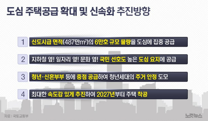 이번 대책은 지난해 9월 7일 발표된 '주택공급 확대방안'의 연장선 상에서 접근성이 좋은 도심 내 유휴부지 등을 활용해 주택 공급을 신속히 늘리는 데 방점을 두고 추진됐다.