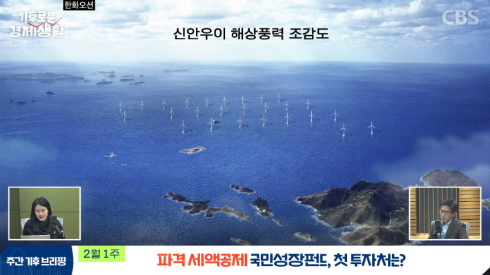 ◇ 최서윤> 정부가 콕 집어준 족집게 투자처. 전남 신안군의 우위 해상풍력 발전 산업이 선정됐습니다. 신안군 도초면 우이도 남측 해상에 390MW(메가와트) 규모의 설비를 구축하는 사업이에요. 총 사업비는 3조 4천억 원입니다.