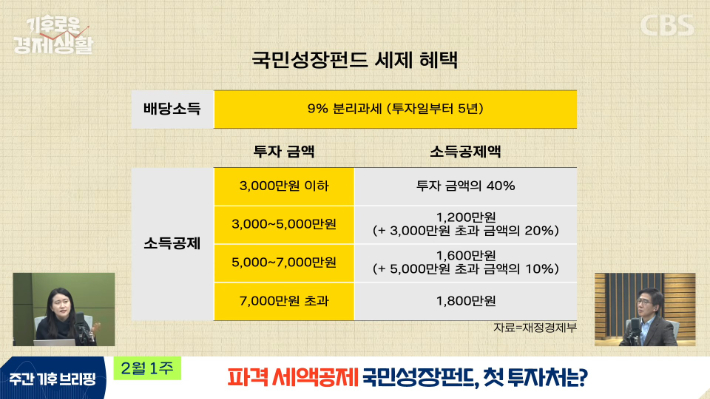 ◇ 최서윤> 사실 뭐 제대로 수익률을 올리거나 뭐 흥행했던 건 아니니까 이번에 국민성장펀드에 대해서 우려하는 분들도 있더라고요. 그래서 지금 아무래도 예전보다 정부가 진짜 파격적인 세액공제, 소득공제 혜택을 주는 거고요. 그리고 아까 말씀드렸던 거의 원금 보장에 가까운 손실 보장, 이건 뭐냐면요. 투자했을 때 손실이 날 수 있잖아요. 손실의 20%까지는 정부가 메꿔주기로 했어요.