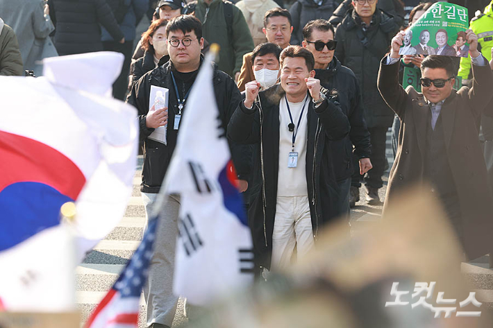 이재명 대통령과 김현지 청와대 제1부속실장에 대한 허위 사실을 유포한 혐의로 고발된 한국사 강사 출신 보수 유튜버 전한길 씨가 12일 오전 서울 동작경찰서에 피의자 신분으로 출석하고 있다.