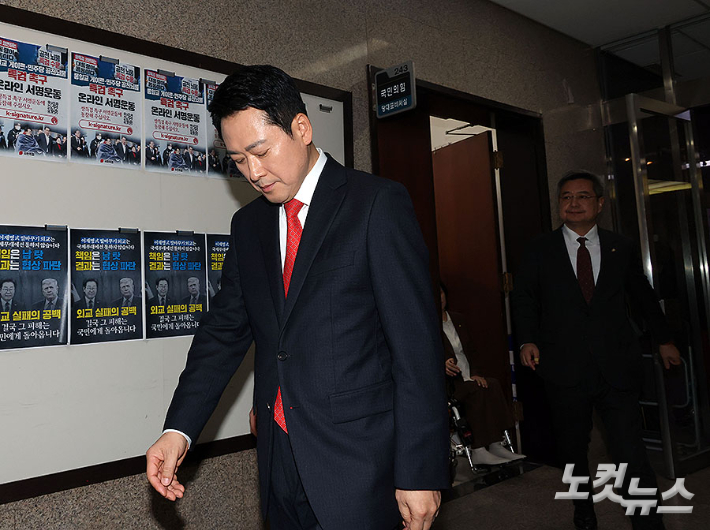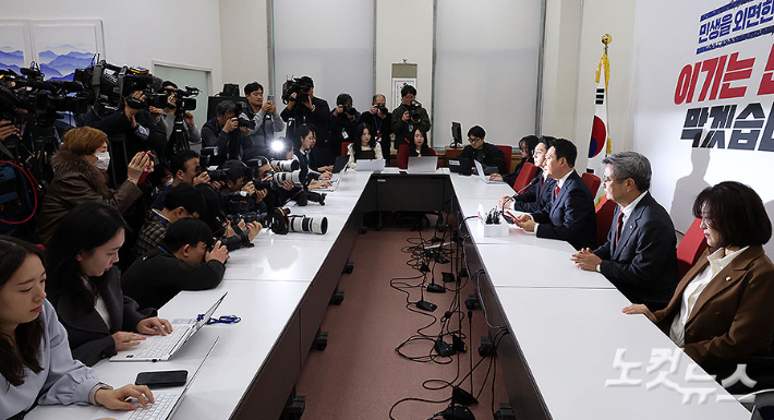 국민의힘 장동혁 대표가 12일 이재명 대통령, 더불어민주당 정청래 대표와의 오찬회동에 불참한다고 밝힌 후 기자회을 갖고 있다. 장 대표는 "한 손으로 등 뒤에 칼 숨기고 다른 한 손으로 청하는 악수에 응할 수는 없는 노릇"이라며, 전날 국회 법제사법위원회에서 민주당이 '4심제' 논란의 재판소원법을 강행 처리한 것과 관련해 "정청래 대표는 이 대통령의 엑스(X)맨인가"라고 말했다. 이어 이날 예정된 민생법안 처리를 위한 본회의에도 불참하겠다고 밝혔다.