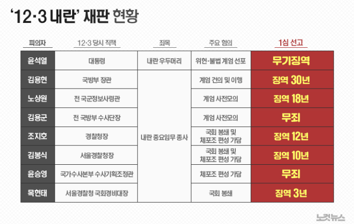 재판부는 이들이 윤 전 대통령의 지시에 따라 군과 경찰을 실제로 움직이며 내란 실행에 핵심적인 역할을 했다고 판단했습니다.