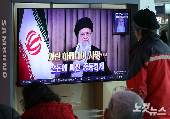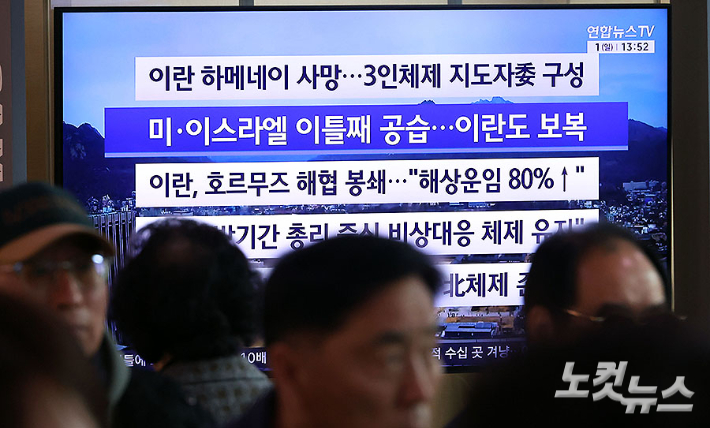 미국과 이스라엘의 이란 공습으로 지난달 28일(현지시간) 아야톨라 세예드 알리 하메네이 최고지도자가 폭사한 가운데 1일 서울역 대합실에서 시민들이 관련 뉴스를 시청하고 있다.