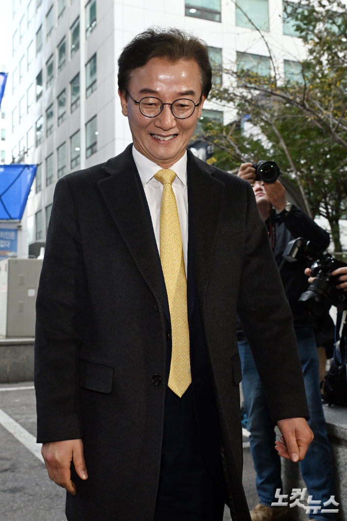 더불어민주당 전재수 부산시장 예비후보가 17일 서울 여의도 중앙당사에서 열리는 공천관리위원회의 공천 면접에 참석하고 있다.