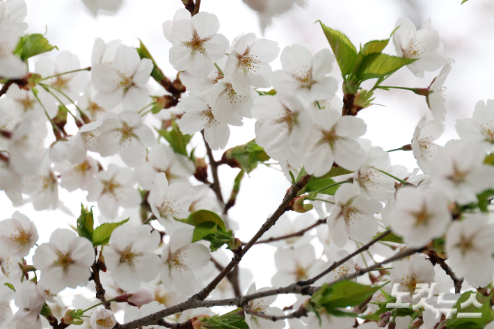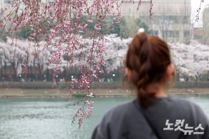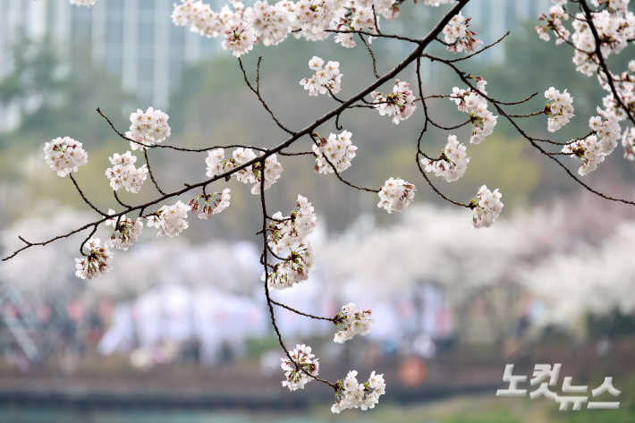 봄바람 휘날리며 활짝 핀 석촌호수 벚꽃[노컷네컷]