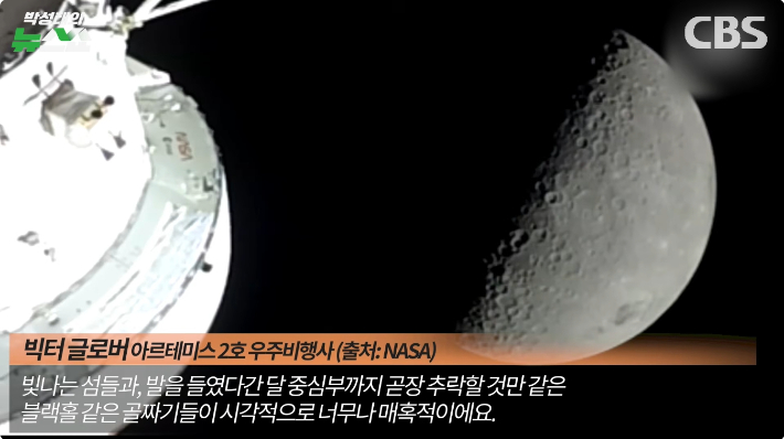 ◇ 박성태> 죄송합니다. 트럼프에 대한 입장을 요구하려고 그랬는데 넘어가서 저희가 이번 아르테미스 2호에 대해서 달의 뒷면을 인류가 직접 눈으로 그러니까 그전에는 우주선이 가서 위성 같은 게 가서 찍어온 적은 있는데 사람이 직접 간 적은 없었죠. 일단 그거를 생생한 감상평을 한 분이 있습니다. 뭐냐 하면 직접 가서 본 분, 빅터 글로버라는 아르테미스 2호의 우주 비행사의 감상평을 잠깐 들어보겠습니다.