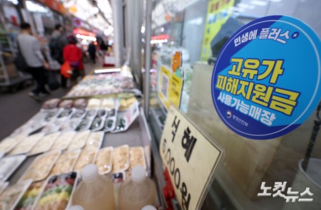 고유가 피해지원금 1차 지급이 시작된 27일 서울 강서구 남부골목시장에서 '고유가 피해지원금 사용가능매장' 스티커가 부착돼 있다. 1차 지급 대상자는 기초생활수급자, 차상위계층·한부모가족 등 취약계층이다. 지원 금액은 기초생활수급자의 경우 1인당 55만원, 차상위계층·한부모가족은 1인당 45만원이다. 지원 대상자가 비수도권이거나 인구감소지역 주민인 경우 1인당 5만원씩 추가 지급한다. 2차 지급은 1차 지급 대상자를 포함해 국민 70%를 대상으로 이뤄질 예정이다. 대상자 선정기준은 내달 초 발표될 예정이다.
