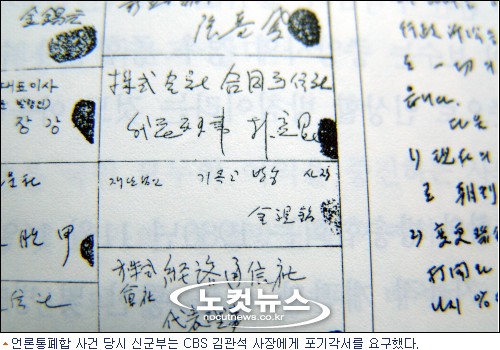 보안사는 즉시 언론사 사주들을 불러 각서를 받아 언론 통폐합 절차를 진행했다. 언론 통폐합이 발표되기 직전인 11월 12일 밤 8시 CBS의 고 김관석 사장은 보안사에서 지정하는 장소에 출두해 정부의 통폐합 조치를 받아들이겠다는 포기각서에 서명했다.