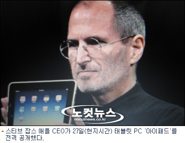 애플의 최고경영자(CEO) 스티브 잡스가 27일(현지시간) ''아이팟, 아이폰''의 뒤를 잇는 애플의 차세대 모바일 기기인 태블릿 PC ''아이패드(iPad)''를 전격 공개했다.