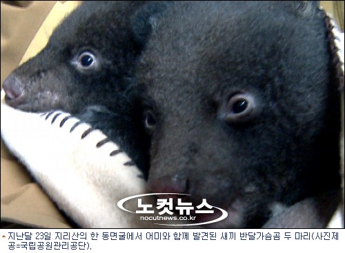 그런데 놀랍고 또 반갑게도 바위굴 안에서 암놈과 수놈 한 마리씩 모두 두 마리의 아기 반달곰이 함께 발견됐다.