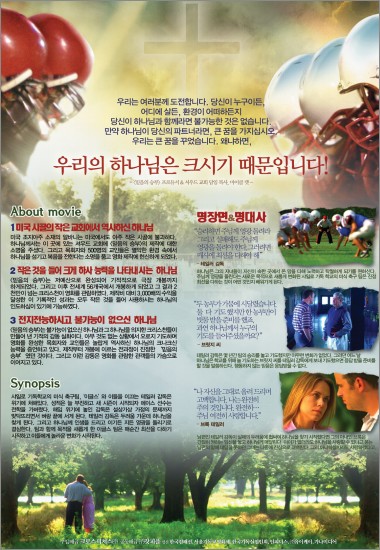 영화 ''믿음의 승부''는 저조한 성적으로 팀 해체와 감독의 해임 위기까지 갔던 시골 기독학교의 미식 축구팀 ''이글스''가 연승으로 고교 미식축구 챔피언 결승전에 진출하여 기적같이 챔피언이 된 감동적인 실화다.