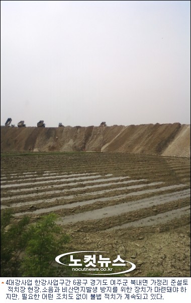 농경지를 점령한 준설토 적치장은 소음과 먼지를 차단할 어떤 장치도 갖추지 않고 있어, 주변 주민들의 고통은 이만저만이 아니다.
