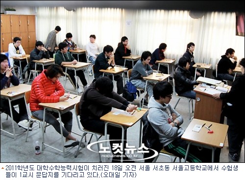 2011학년도 대학수학능력시험이 18일 오전 8시40분부터 전국 82개 시험지구, 1천206개 시험장에서 일제히 시작됐다. 시험은 1교시 언어, 2교시 수리, 3교시 외국어(영어), 4교시 사회·과학·직업탐구, 5교시 제2외국어·한문 등 5개 영역이며 오후 6시5분까지 진행된다.