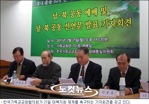이런 가운데 한국기독교교회협의회(총무:김영주 목사)는 21일 ''대통령께 보내는 서신''을 통해 인도적 대북지원 재개를 강력히 촉구하고 나섰다.