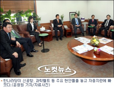 동남권 신공항 문제로 시끄러웠던 전날에 이어 7일 열린 최고위원회의에서는 과학벨트 분할 배치 움직임이 분란의 소지를 제공했다.