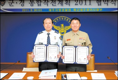 신용선 청장은 "같은 해병대 출신으로 후배인 황 준장이 흔쾌하게 경찰의 훈련 협조 요청을 받아들여 그동안 경찰의 작전수행능력 제고에 큰 역할을 했다"면서 "최소한 제주 지역에서 비상상황이 발생한다면 전국 어느 지역보다 군.경의 협조체제가 원할하게 이뤄질 것"이라고 평가했다.