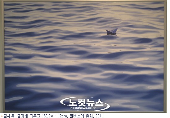 강의 물빛은 하늘의 빛이자 작가내면의 색깔이다. 김작가가 빚어낸 물빛은 하늘의 상태, 바람의 속도, 물의 깊이가 투영되고 반영된 형상이다. 작가는 아름다운 물빛을 만나기 위해 덕소와 오륙도, 화천 등지를 쏘다녔다. 잔뜩 기대를 하고 갔다가 날씨가 갑자지 변덕을 부려 허탕친 적도 많았다고 한다. 작가는 느낌이 좋은 물빛을 만나면 사진에 담아온 뒤 그 장면의 느낌을 유화로 다시 살려낸다. 김 작가는 재현된 물빛에 대해 "하늘의 색이자 제 마음의 색이죠"라고 했다.아주 연한 분홍빛을 반짝이며 출렁이는 물결은 잔잔한 기쁨이 번지면서 미소가 벙그는 모습을 보는 것 같다. 종이배에 사공은 없지만, 그 보이지 않는 사공은 작가자신이요, 그 도통한 뱃사공은 인생의 파도에 휩쓸리지 않는, 평정심의 주인인 것이다.