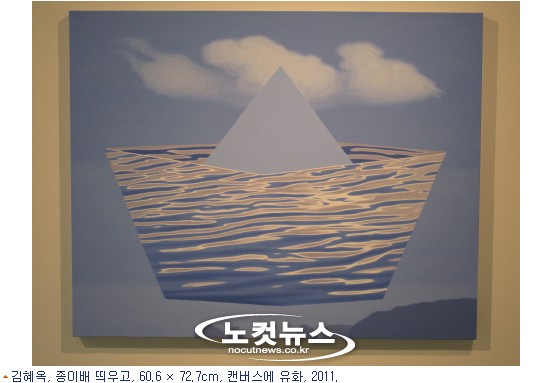 김혜옥 화가에게 인생은 배다. 그 배는 중용이요, 관조요, 소통이요, 비상이다. 그의 작품에 등장하는 작은 종이배는 큰 강의 파도가 그 배를 집어삼킬듯이 출렁거려도 오뚜기처럼 균형을 잡고 있다. 그런가하면 짙은 녹색의 산그림자가 아름다운 강줄기를 따라 내려가는 종이배는 관조의 세계에 빠져들게 한다.고요한 강물 위를 구름에 달가듯이 움직이는 종이배는 은은한 파장을 일으키는데,강물과 종이배는 연애하듯이 속삭이며 교감하고 소통한다. 강물에 떠있던 종이배는 돌연 하늘로 솟아올랐다. 그 공중의 배는 강물의 종착지인 바다가 되었고, 그 위의 돛은 섬을 탄생시켰으며, 그 섬 위에 유유히 떠도는 구름과 푸른 하늘을 안고 있다. 늘 하늘을 품고 살던 강물은 마침내 하늘로 날아올랐다. 작은 종이배는 중용,관조,소통의 도를 닦아 깨달음의 세계로 비상하더니 물아일체가 되고 온 우주를 품었다.