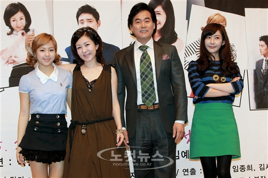 SBS플러스 드라마 ''오마이갓''의 주연배우들이 29일 서울 목동 SBS 사옥에서 열린 제작발표회에서 기념촬영을 하고 있다. (왼쪽부터) 김예원, 박준금, 이병준, 김세인. 드라마 ''오~마이갓!''은 결혼 20년차 중년부부와 결혼 3개월차 신혼부부의 부부공감 시트콤으로 다음 달 2일 첫 방송된다.