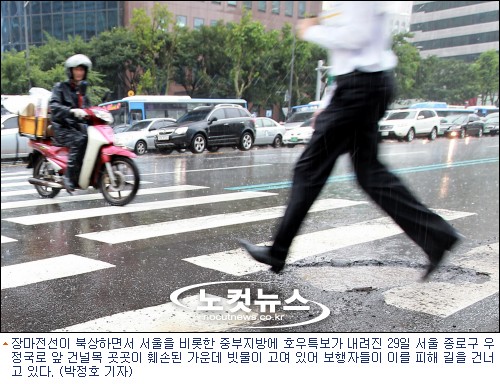 중부지방의 집중호우로 서울 지하철1호선 철로가 유실돼 열차 운행이 중단되는 사고도 빚어졌다.