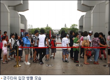 경주엑스포 조직위원회 관계자는 ''''개막 후 열흘동안 덥거나 비가 왔고 휴가철과 방학중이라 소규모 가족단위 관람객이 주를 이뤘는데도 하루평균 1만4,000명이 방문했다는 것은 대단한 성과''''라고 밝혔다.