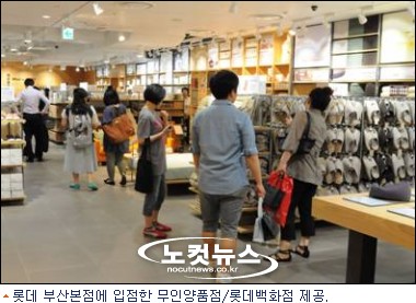 롯데백화점 부산본점(서면점)은 이달들어 지하 MB2층(옛 호텔 지하 2층)에 433㎡(131평)의 무인양품(無印良品)점을 열었다.