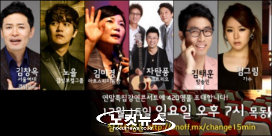 강연회는 12월 16일 저녁 7시 목동 KT체임버홀에서 열린다. 신청은 온라인 온오프믹스 페이지 ( http://onoff.mx/change15min )에서 가능하다.연애의>세상을>