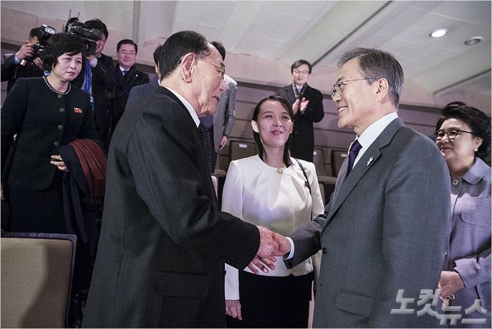 공연이 끝난 후 김여정 특사가 문 대통령 손을 자신의 두 손으로 감싸고 이야기를 나누는 장면도 인상적이었다.