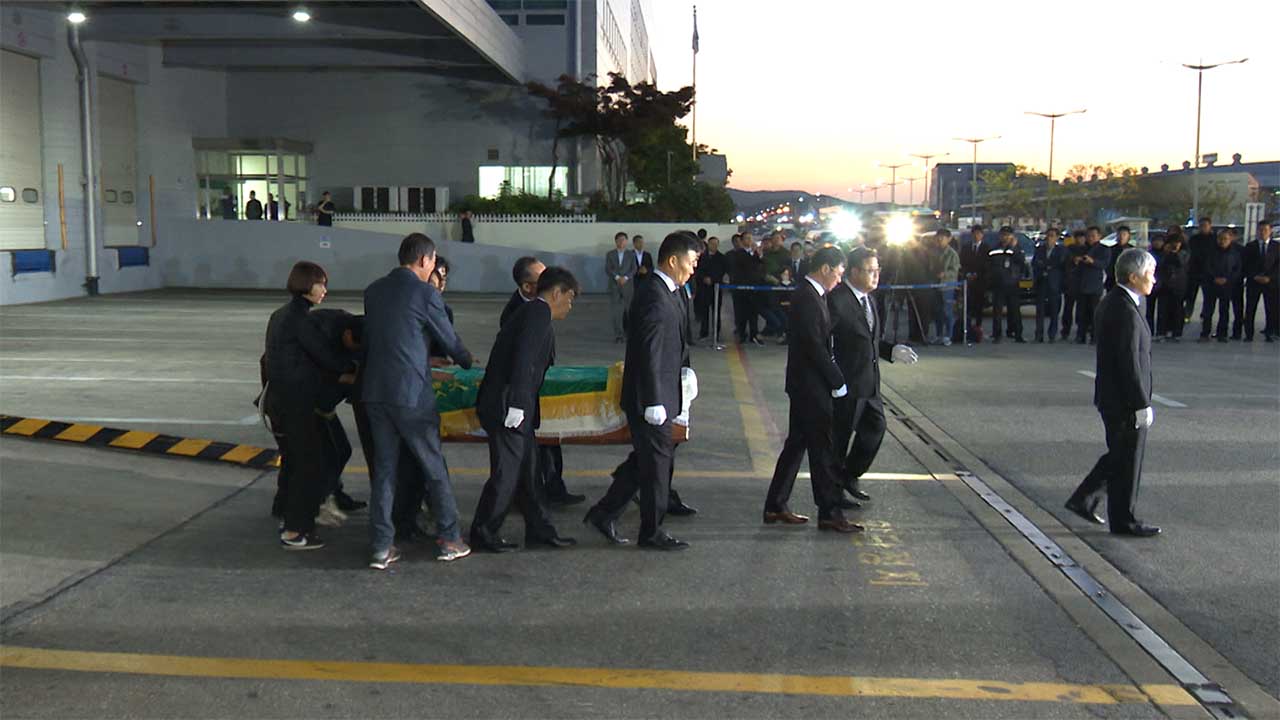 김창호 대장을 포함한 5명의 히말라야 한국원정대 대원들의 시신이 17일 새벽 5시 인천공항에 도착해 가족들의 품에 안겼다.
