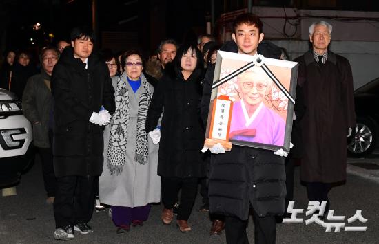 일본군 '위안부' 피해자들의 기둥이자 인권운동가로 활동했던 故김복동(93) 할머니 장례 마지막 날인 1일, 영정사진이 고인이 살던 쉼터를 거쳐갔다.
