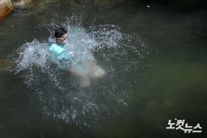 절기상 가장 덥다는 '대서'인 22일 경기도 과천향교 계곡에서 이런이들이 더위를 식히고 있다.